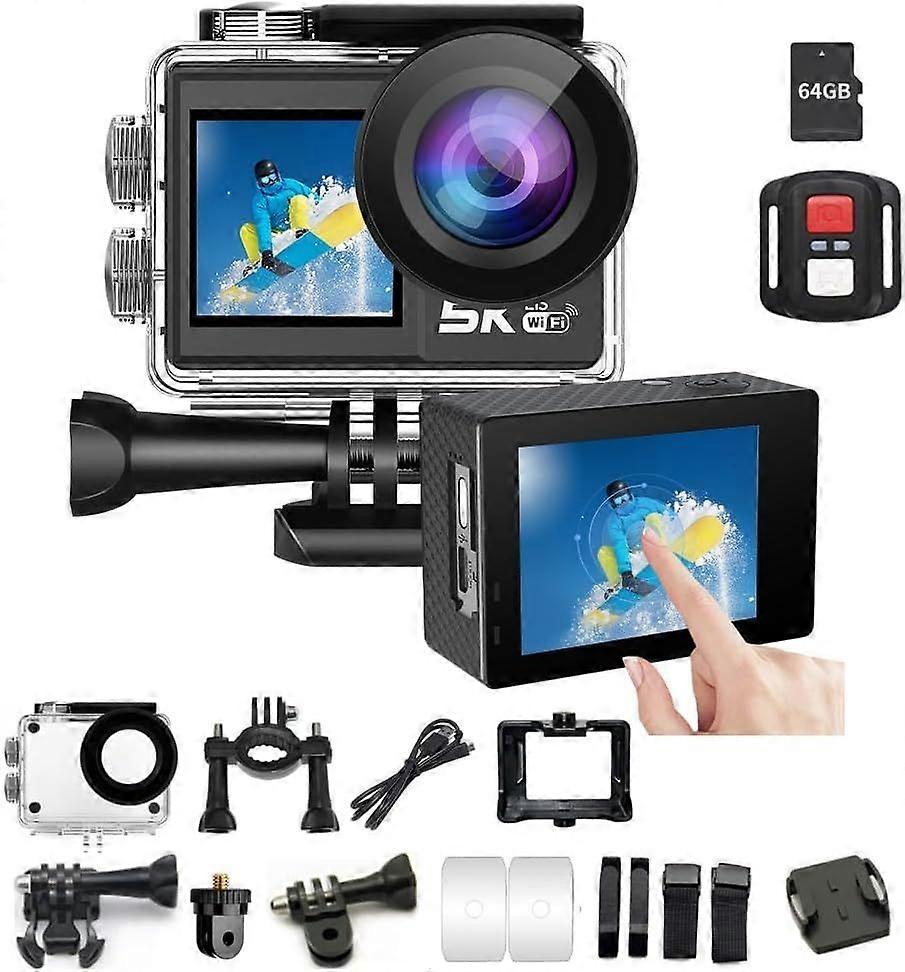 Upgraded Action Camera with Touch Screen, 5K30FPS 50MP Dual Screens, Underwater