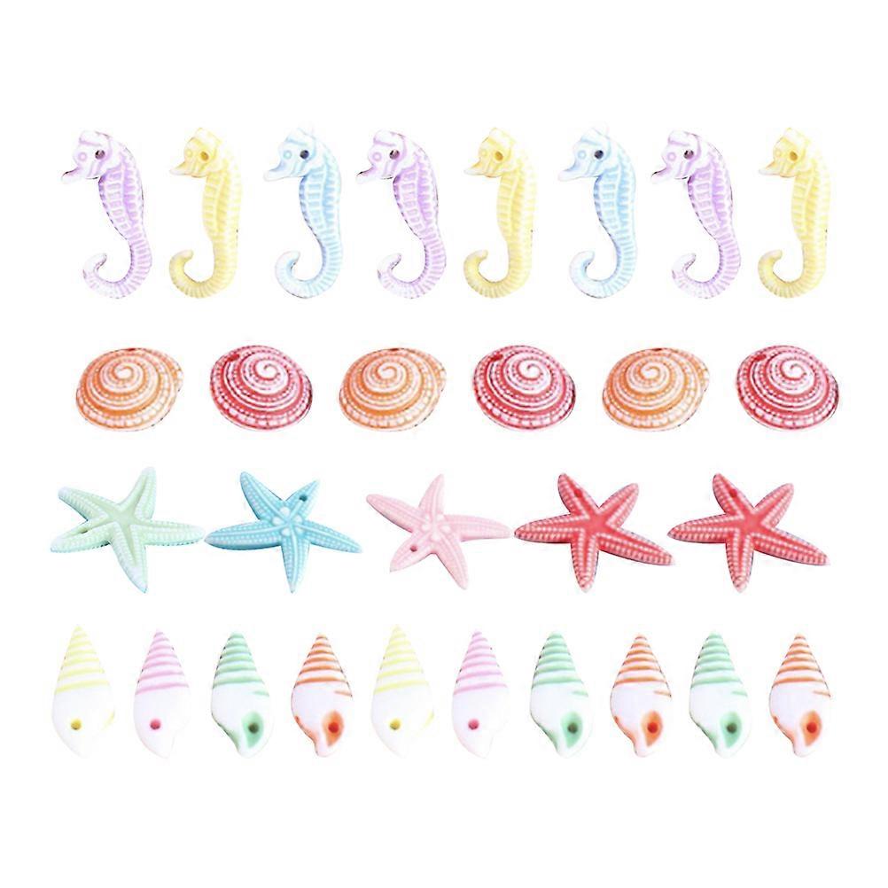 Seahorse Star Conch Ornaments Set of 48pcs for Ocean Theme Decoration Resin Material Assorted Color
