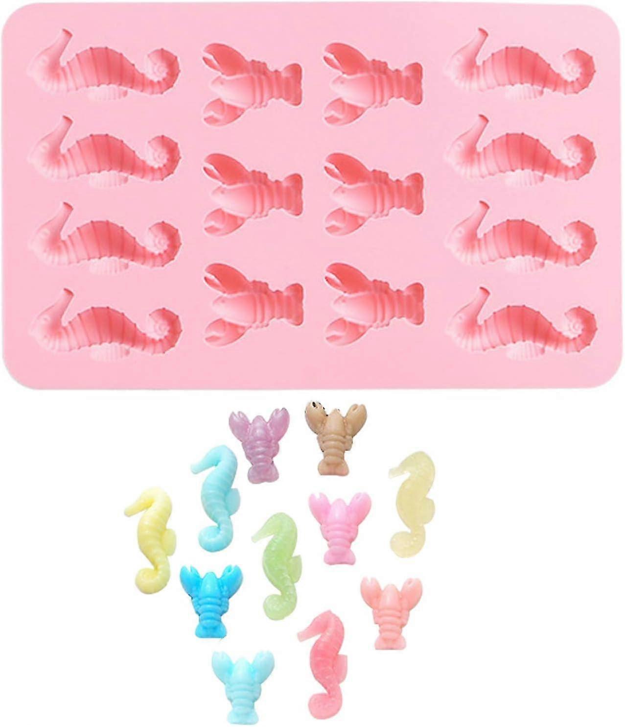 Seahorse Lobster Moulds Chocolate Handmade Soap Ice Cube Jelly Kitchen Baking Mold-pink