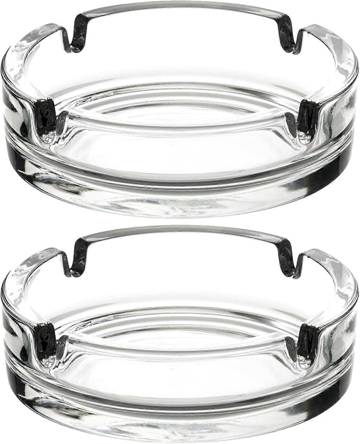 2pcs Glass Ashtrays Bulk for Cigarette Cigar Crystal Ashtray Large Home Round Clear Ashtray Cool Office Decor Outdoor and Indoor Use Patio Porch Deck
