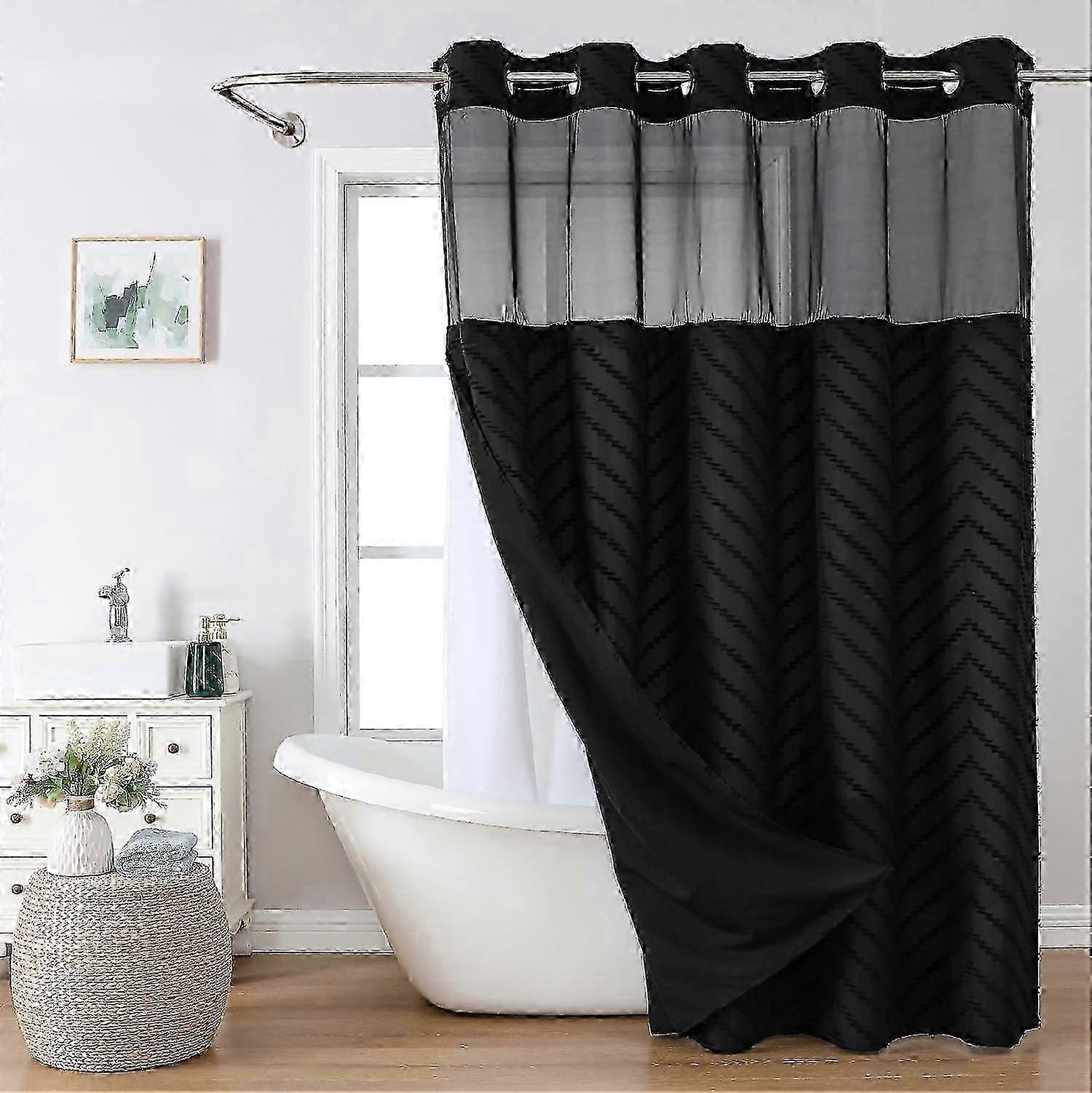 Tufted Chevron Striped Water Repellent Shower Curtain for Hotel Grade Boho Style 71Wx74H(72H)