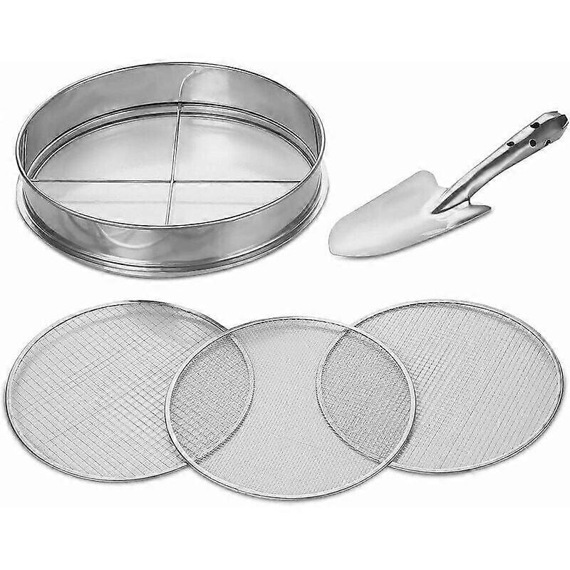 Tamis de Jardin, Tamis de Terre 3en1, Taille 9mm/6mm/3mm, Outil de Jardinage Inoxydable, avec Pelle