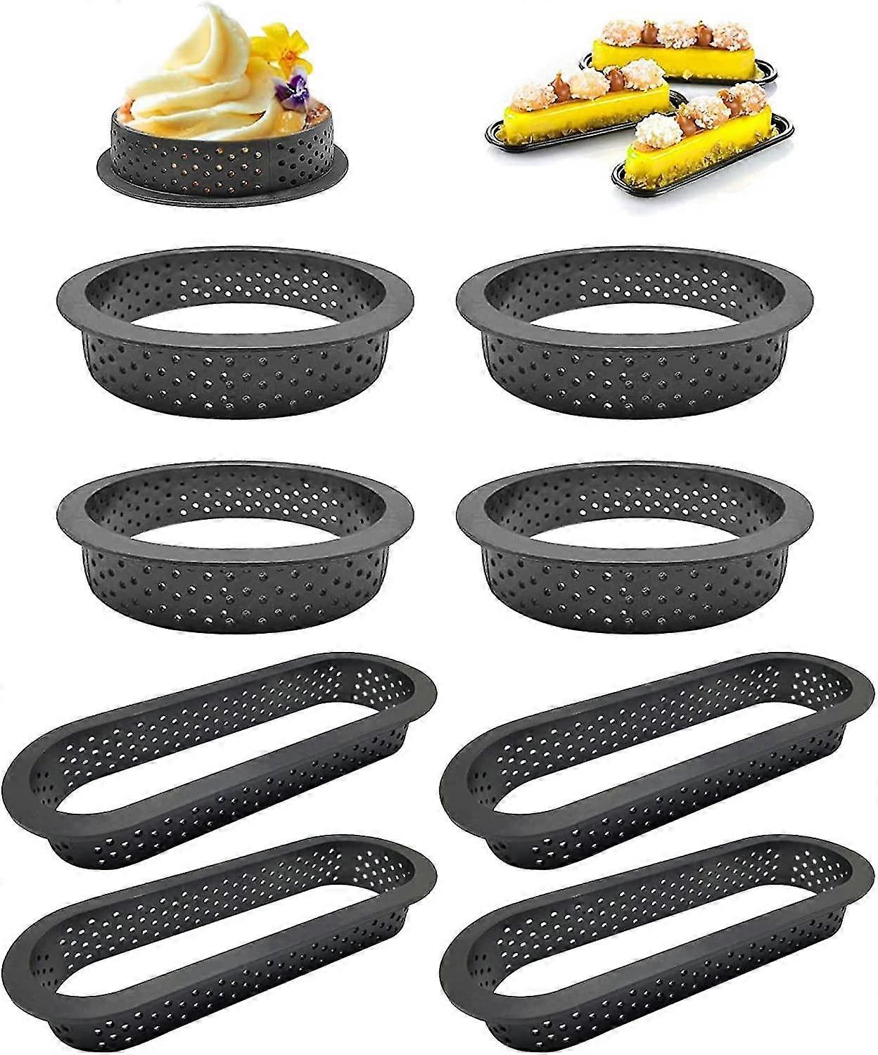 Tart Rings Cake Mousse Molds 8 Pcs Perforated Cake Mousse Ring Non Stick Heat-resistant Mousse Circle Cutter For Baking Diy Dessert Decorating Too