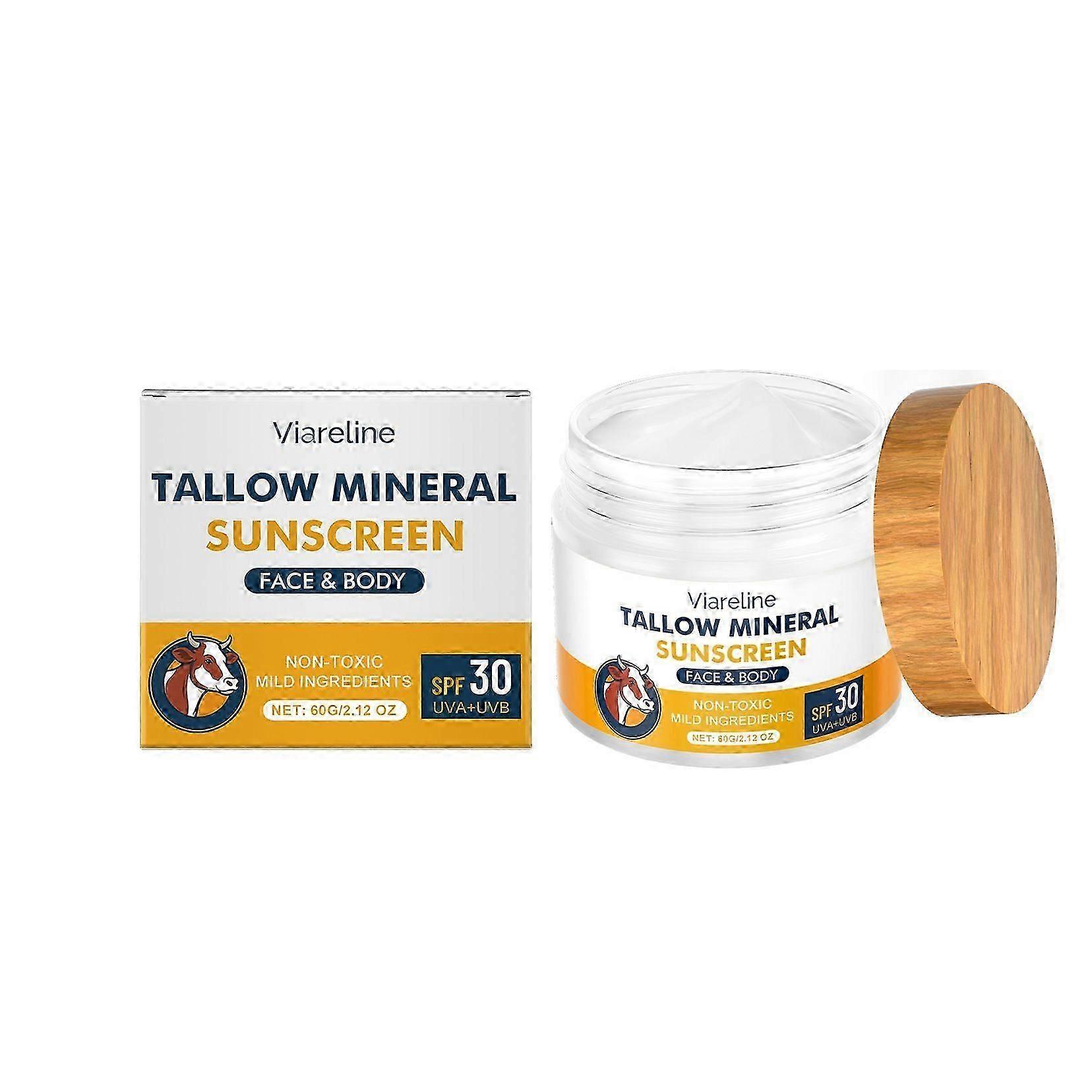 Tallow Sunscreen-SPF 30 with Zinc Oxide,Non-Toxic 2-in-1 Moisturizer & Mineral Sunblock | Reef Safe, Chemical-Free,Lightweight, Clean Formula for Sens