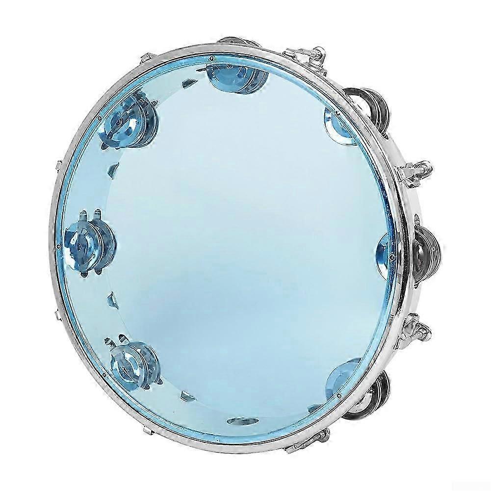Tambourine Hand Drum Double Row Metal Jingles Beech Percussion Music Gift Party Song Blue Leather 10'
