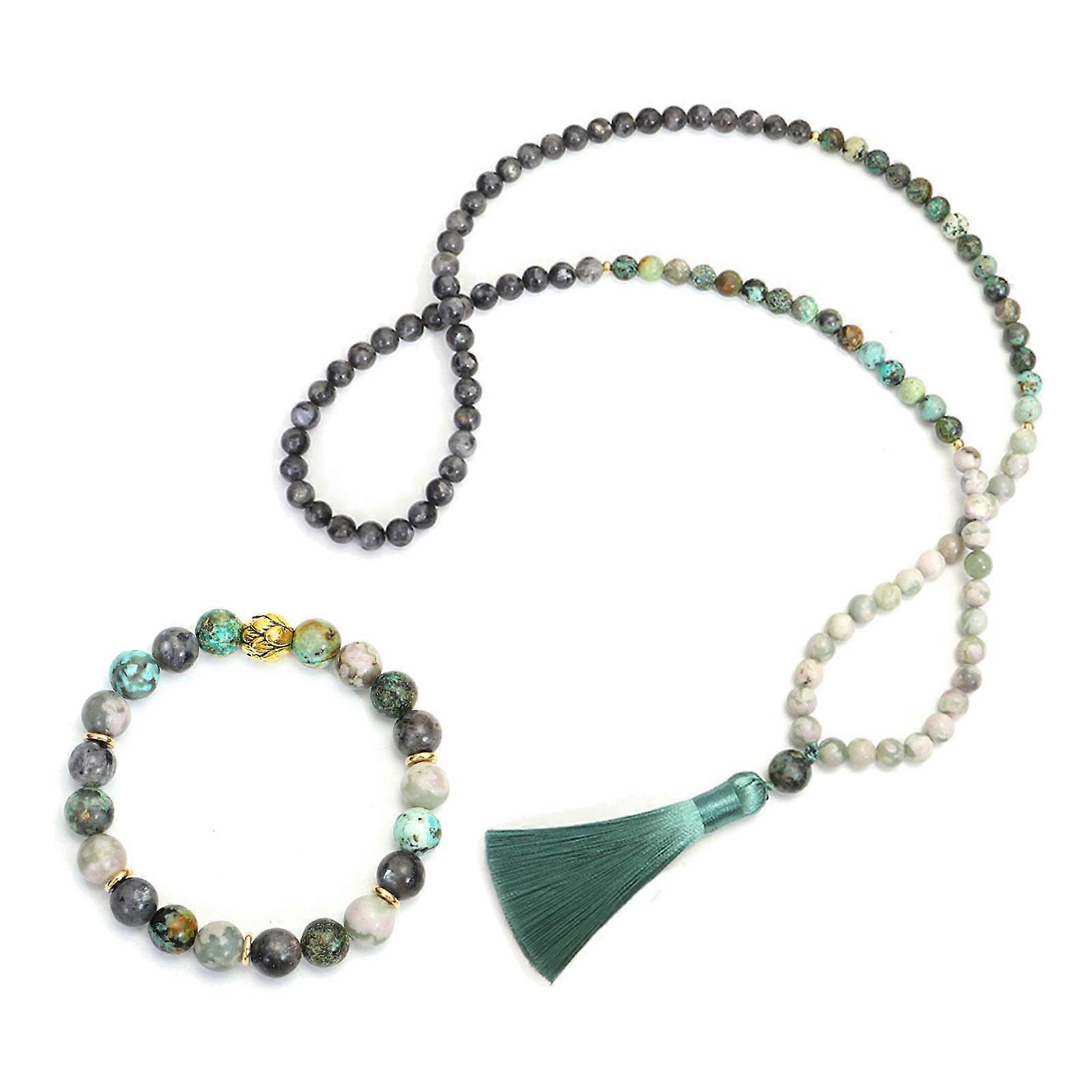 Turquoise Crystal Beads Strand Necklace Bracelet Set Color Tassel Necklace