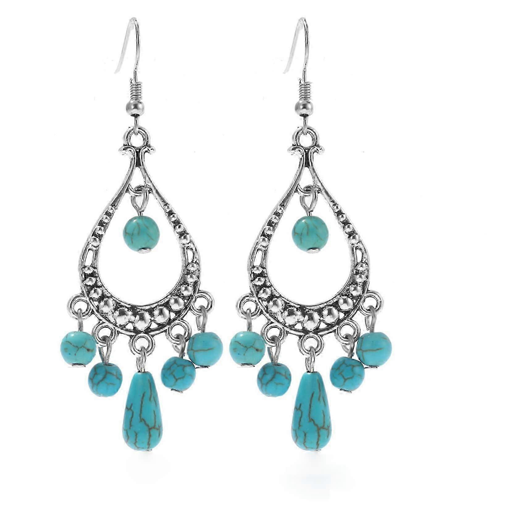 Turquoise Earrings, Bohemian Vintage Silver Drop Dangle Earrings Turquoise Pendant Long Earrings Delicate Metal Earring Western Bohemia Retro Statemen