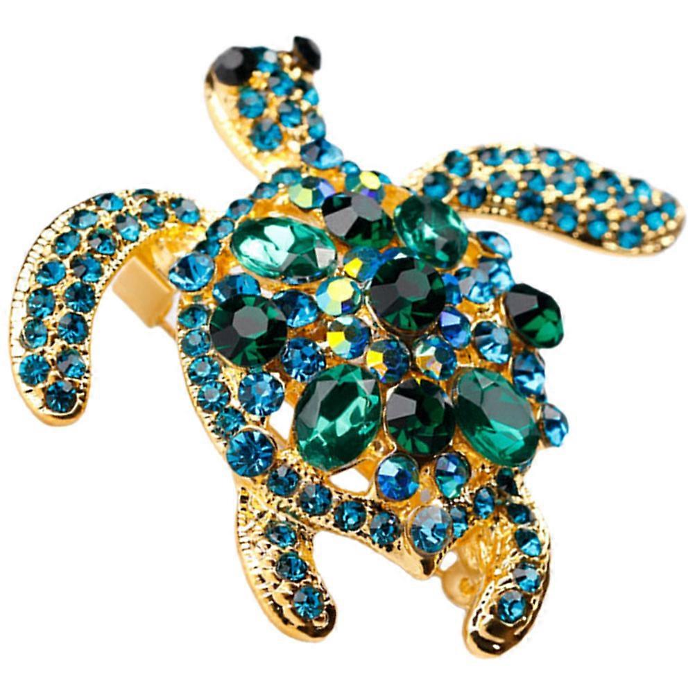 Turtle Pin Rhinestone Clothes Pin Animal Lapel Pin Metal Brooch for Hat Shirt Multi Color 5.6x5.1CM Decoration 1Set