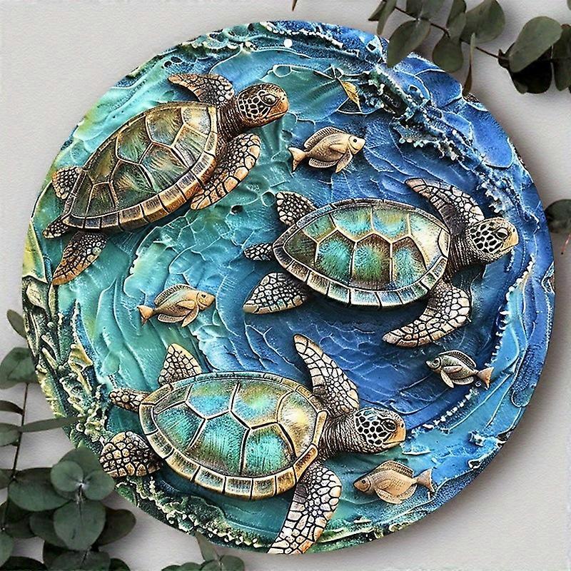 Turtle Metal Sign Wall Art Aluminum Wreath Decor Waterproof Home Decoration - Weather Resistant Circ