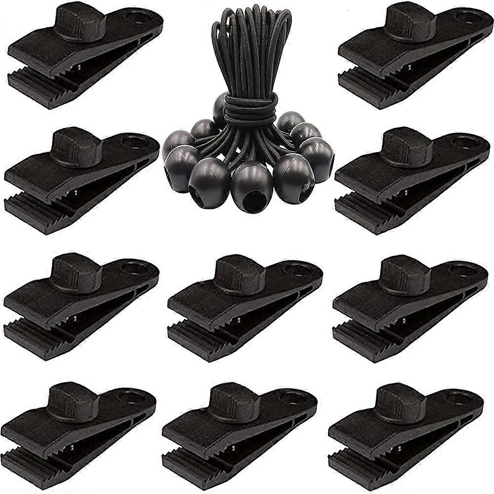 Tarp Clips, Tarpaulin Bungee Cord Ropes Bungee Ball Tent Clip Accessories For Tents,Banners,Covers,Tarp, Boat Cover, Car Cover(10Pcs,Black)