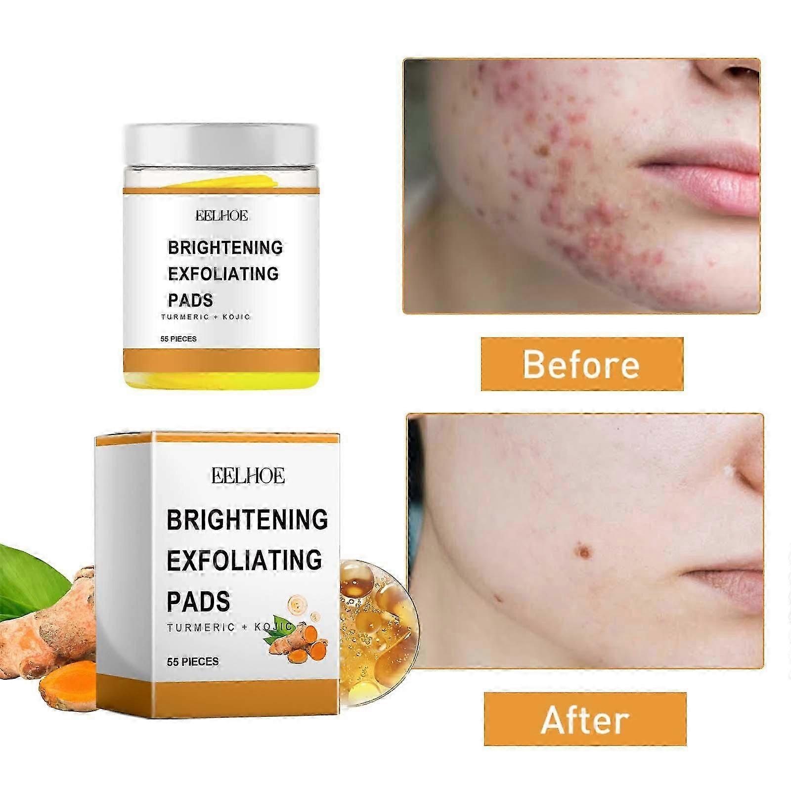 -- BRIGHTENING: Experience the magic of Turmeric and the brightening wonders of Kojic Acid with our Turmeric & Kojic Acid Infused Foaming Exfoliating Pads. Banish acne, fade dark spots, and relish silky-smooth skin. Unlock the power of these premium ingredients for your best complexion ever. Say goodbye to dull skin and embrace a brighter, more vibrant appearance. Enriched with turmeric and kojic acid, our pads help prighten the skin, providing a natural and organic solution that caters to all skin -- EXFOLIATING: Turmeric Brightening Exfoliating Cleansing Pads are formulated with a carefully curated selection of skin-loving ingredients to provide you with the ultimate skincare experience. Use to cleanse, exfoliate and brighten your skin in 1 step. -- EFFECTIVE INGREDIENTS: Turmeric is a natural wonder ingredient great properties. It helps even the skin, reduce the appearance of dark spots, and promote a more even skin tone. Kojic acid is known for its skin-brightening capabilities. It helps to reduce the appearance of age spots, sun damage resulting in a more radiant complexion. -- Ingredients: Cocamidopropyl Betaine, Aloe Vera Juice, Glycerin, Turmeric, Kojic Acid, Salycylic Acid, Vitamin C, Ylang Ylang Essential Oil, Phenoxyethanol. -- HOW TO USE: Using warm water, massage the pads onto skin in circular motion, leave on for 1-2 mins. Rinse off. Follow up with a moisturizer and SPF