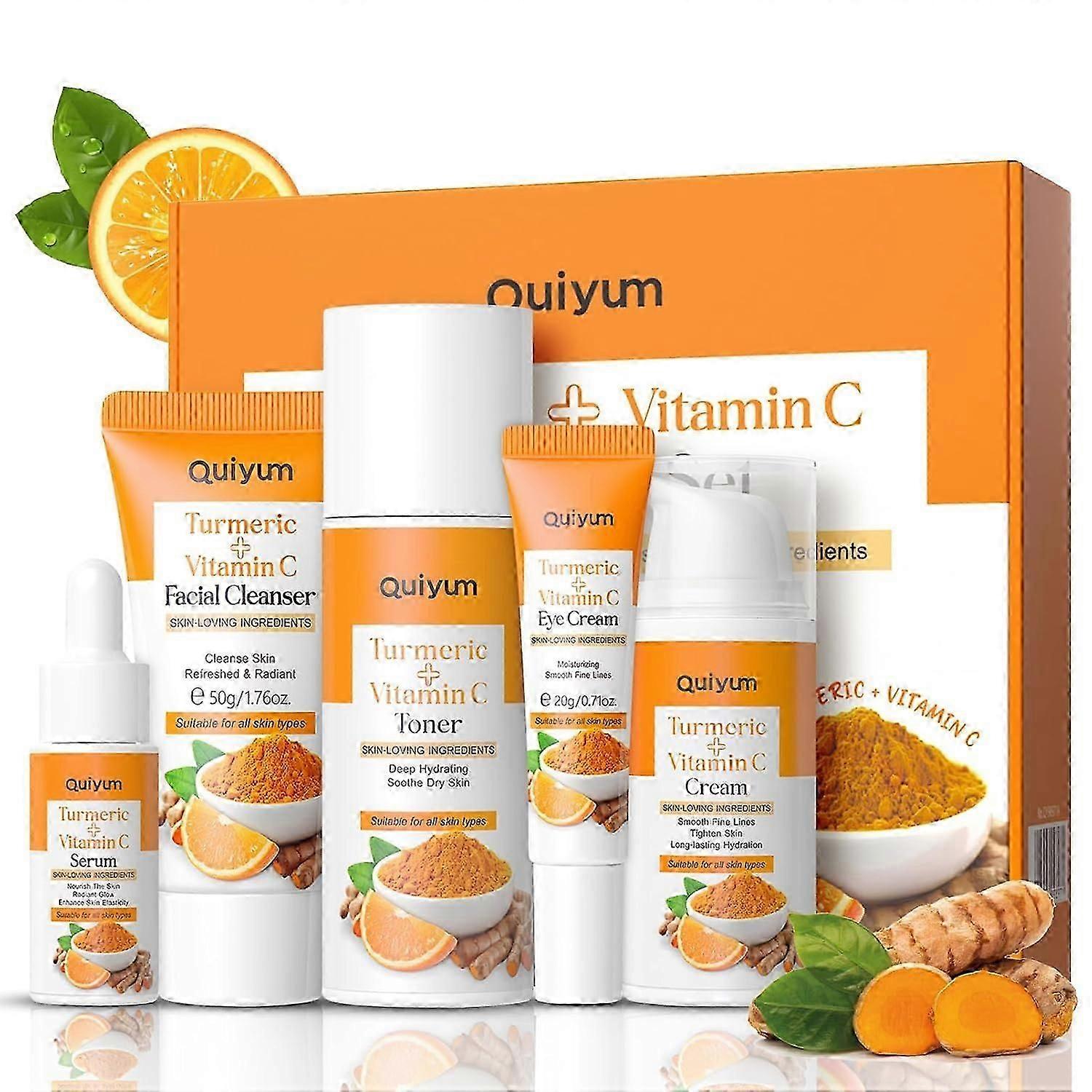 Turmeric Skincare Kits, Cleanser, Serum, Cream,Toner, Eye Cream Facial Skin Care Gift Kit for Women/Girls