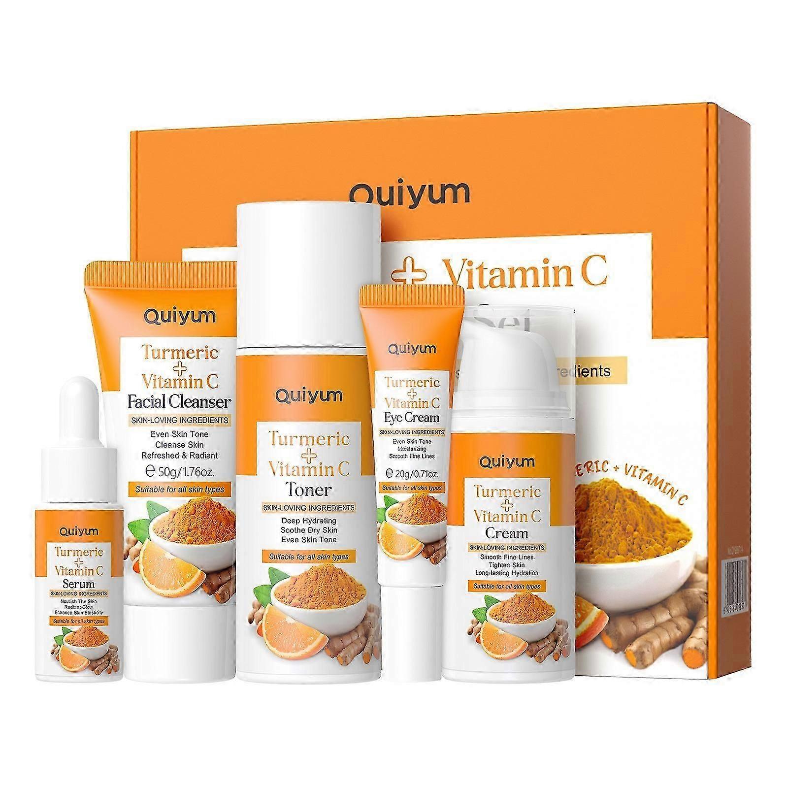 Turmeric Skincare Kits - Beauty Gift Skin Care Set, Turmeric Facial Skin Care Sets - Cleanser, Serum,Cream,Toner,Eye Cream - Skincare Gift for Women