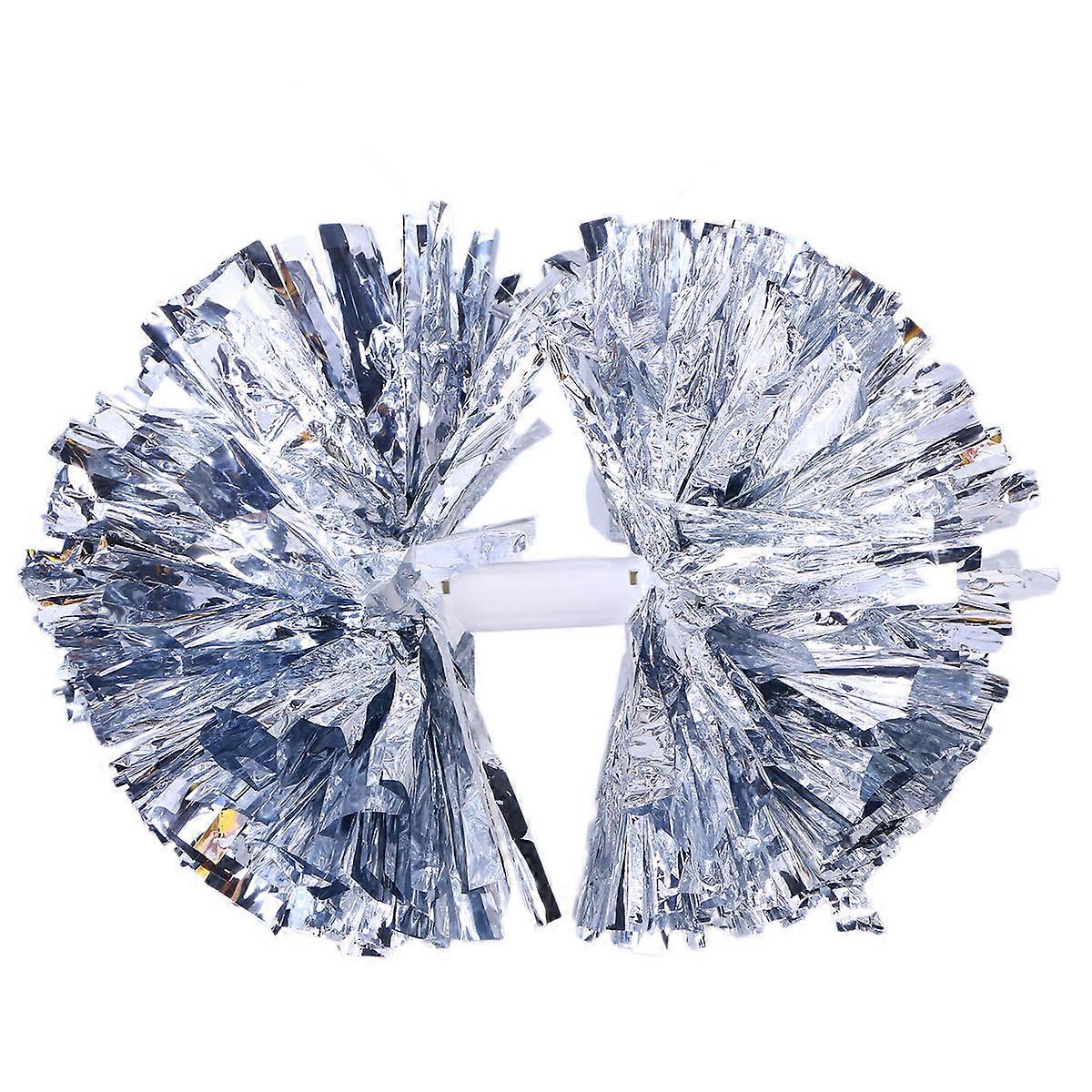 Cheer Pom Pom Cheerleader Ball for Party 2Pcs Silver Sports Pompoms