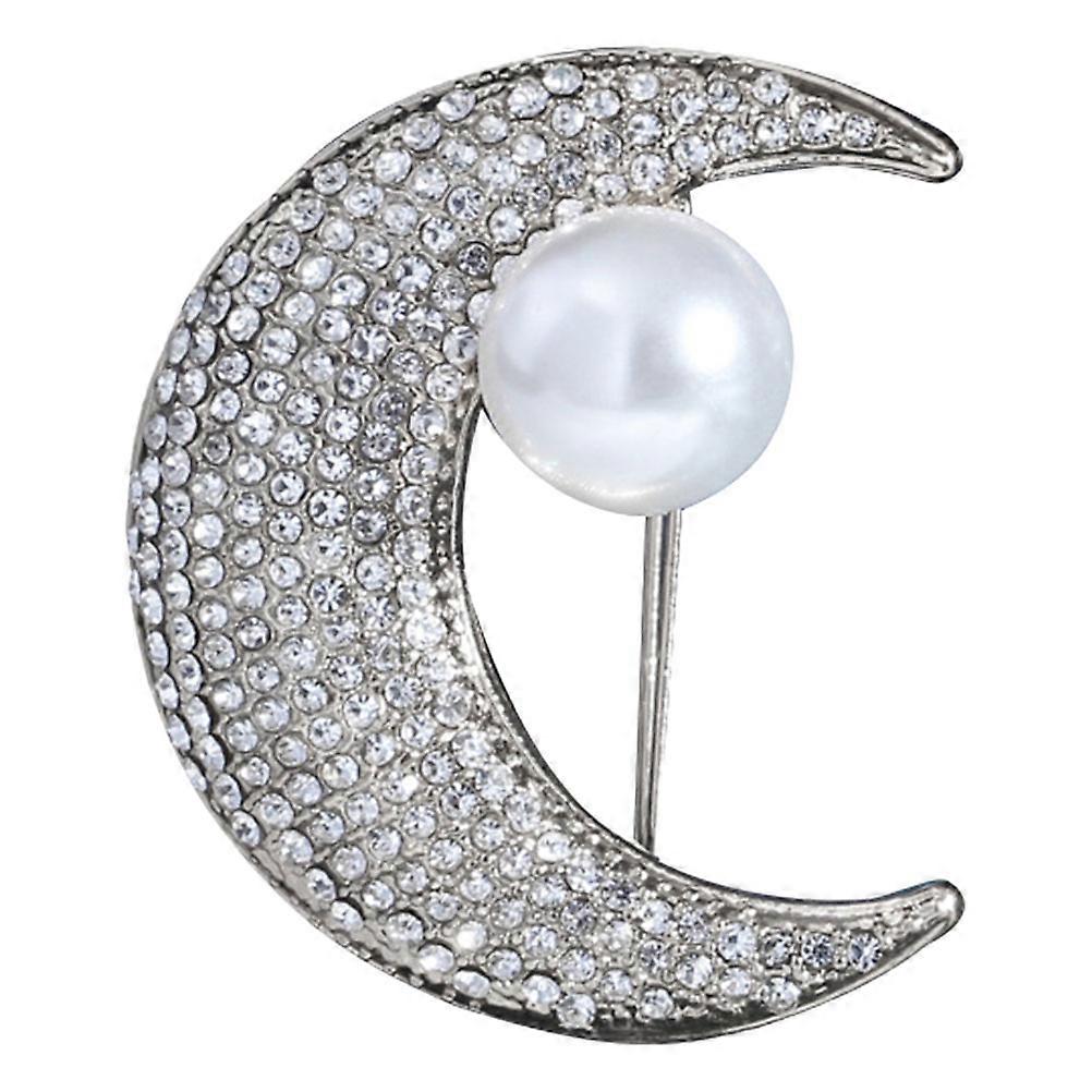 Chest Pin Accessories Pearl Rhinestone Moon Brooch Pin for Women