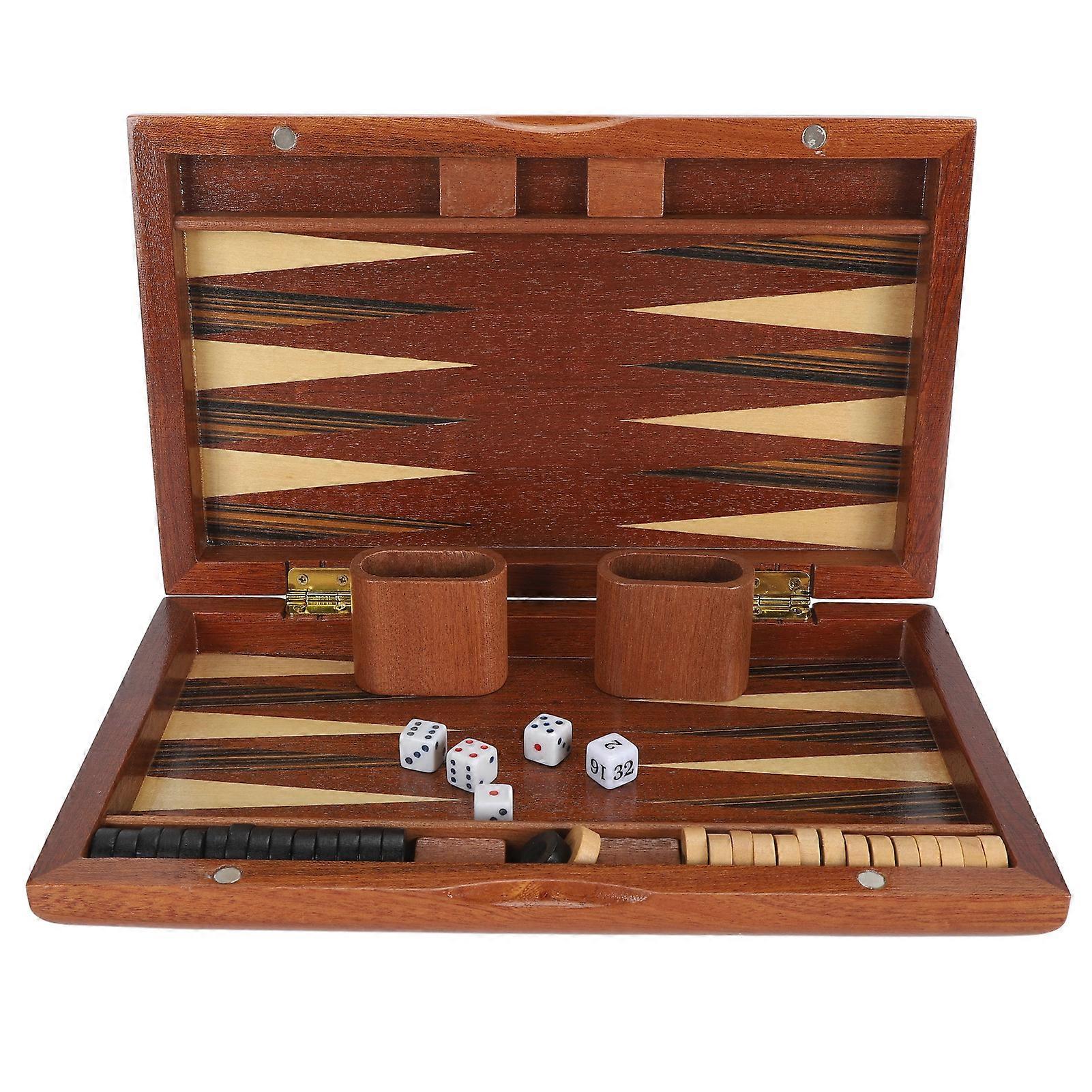 Item Type: Chess Board Game Set Material: Walnut Chessboard Expansion Size: Approx. 34x28x2cm / 13.4x11.0x0.8in Package List 1 x Chess Box 30 x Chess Pieces 5 x Dice 2 x Dice Cup Manual measurement please allow some error. 1HIGH GRADE WALNUT WOOD: Chess board game set is made of premium walnut wood, which is durable and has a nature beauty. 2CHESS BOARD GAME SET: Includes a complete chess board and pieces for a variety of game styles and challenges. 3EXQUISITE WOODEN DESIGN: The chess board set is finely carved and hand polished to present exquisite detail and craftsmanship. A blend of traditional and modern elements. 4PREMIUM BOARD AND PIECES: The board has a comfortable touch and durability, and each piece is balanced and precise, fueling a higher level of gaming experience. 5EASY TO CARRY: The board folds in half and all accessories are nested inside for compact storage and portability. When closed, the slim board fits easily into your bag or suitcase
