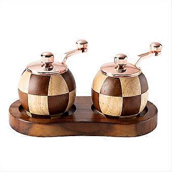 Checkerboard Hand Crank Salt and Pepper Grinder Set