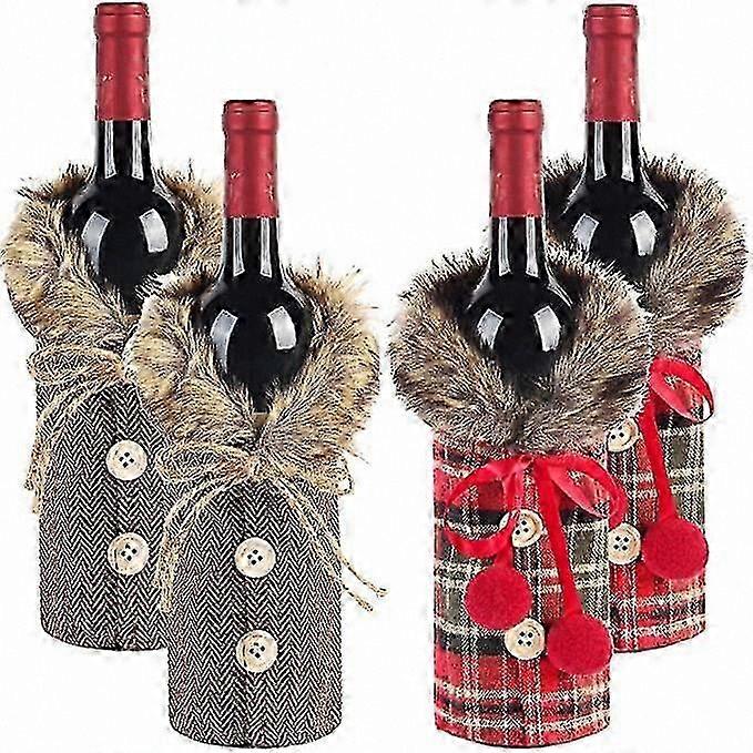 Plaid Christmas Wine Bottle Covers - 4 Pack Festive Bottle Clothes for Holiday Decor and Gifting