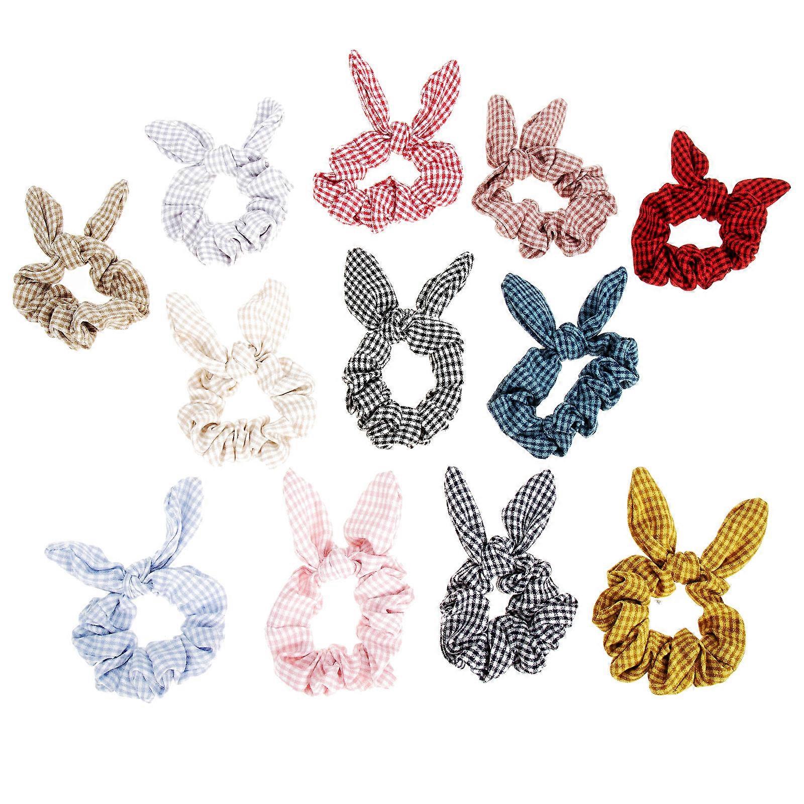 Plaid Hair Rope 12Pcs Rabbit Ears Hair Accessories For Women Assorted Color Hair Decoration