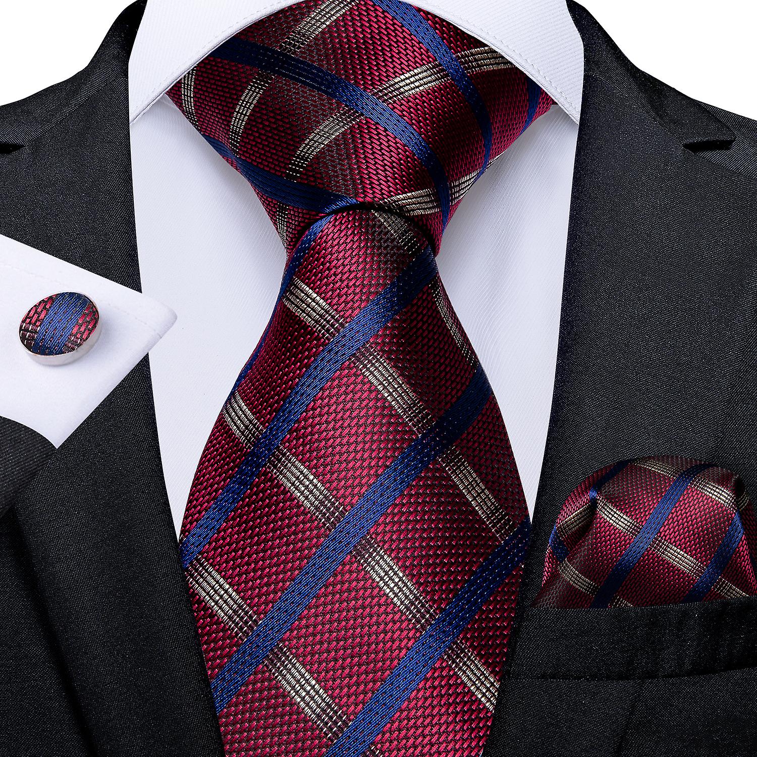 Plaid Men's Tie Set Yellow Purple Blue 100% Silk Tie 8cm Formal Wedding Tie Handkerchief Cufflinks Gift for Men