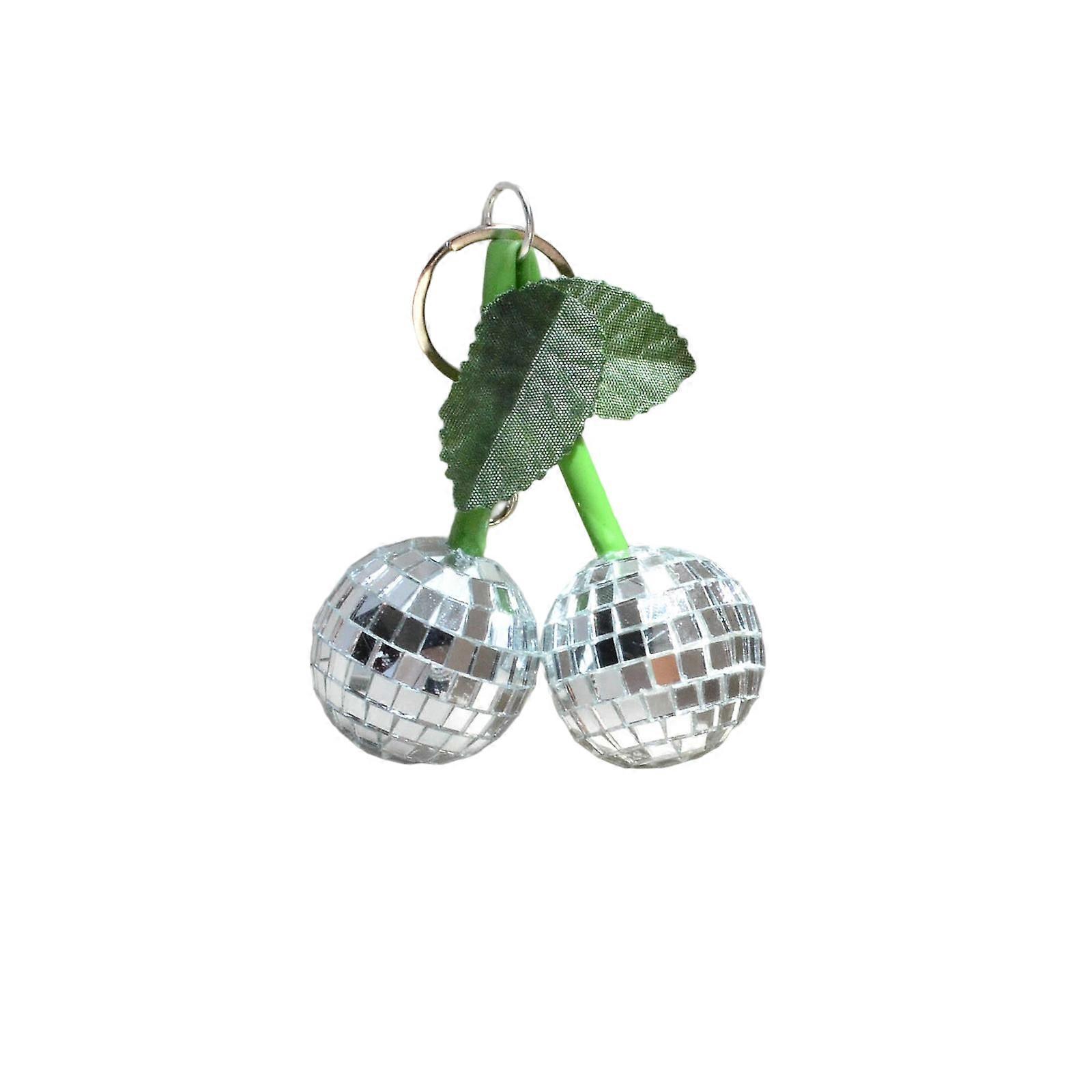 Cherries Shape Mirror Discos Ball Keychain Gift For Women Graduation Party Teacher Appreciation Birthday Jewelry Charm Silver