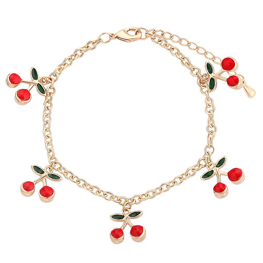 Cherry Charm Bracelet Women Fashion Jewelry Red 18.7x1.2cm Copper Jewelry Decoration 1Pcs