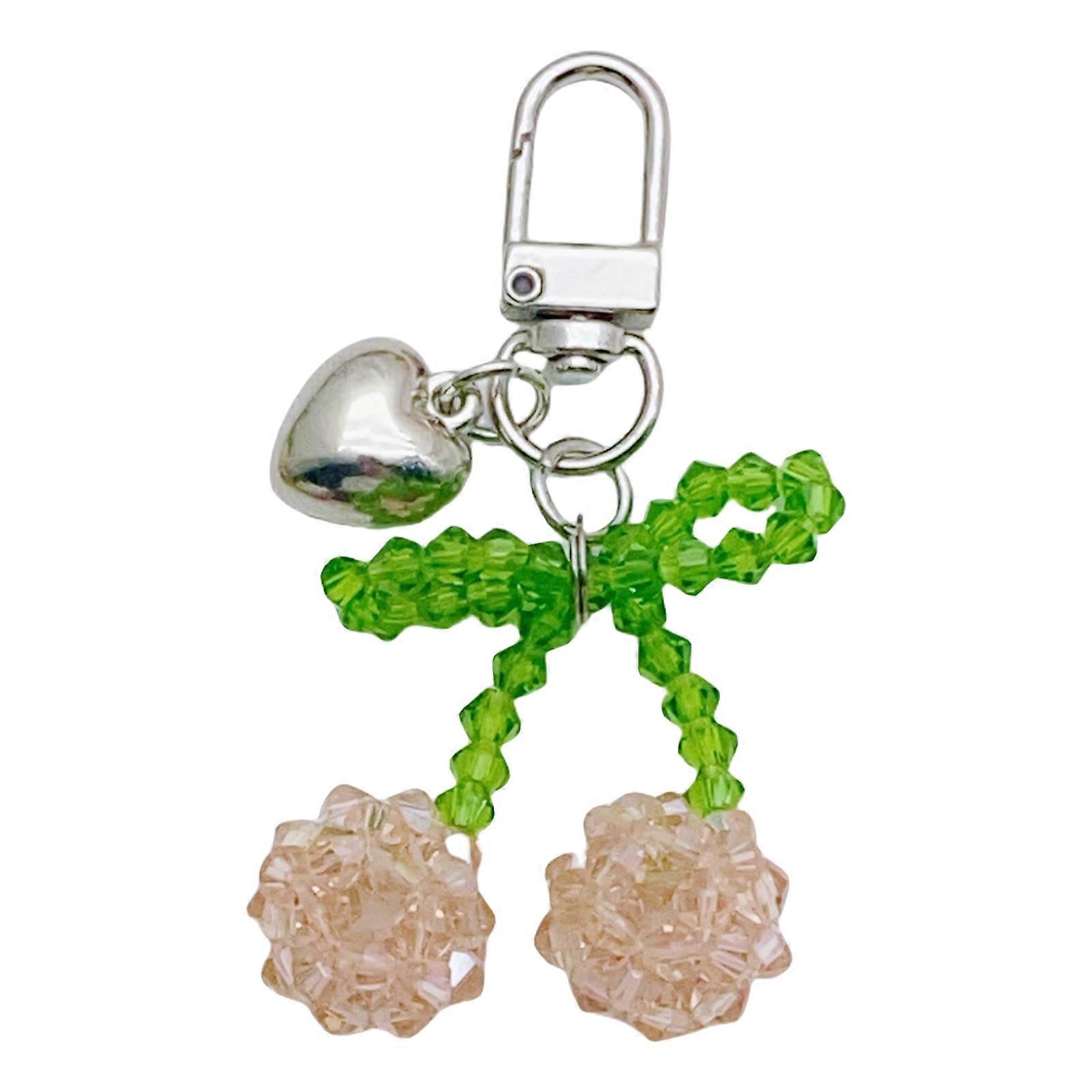 Cherry Beaded Keychain Pink Heart 7.5cm Cute Handmade Crystal Bead Accessory for Women and Teens Bag Charm
