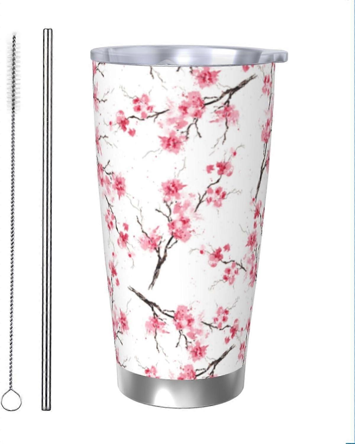 Cherry Blossom Tumbler 20oz Floral Stainless Steel Vacuum Insulated Tumblers with Lid and Straw Flowers Travel Coffee Mug Tea Wine Cups Water Bottle G