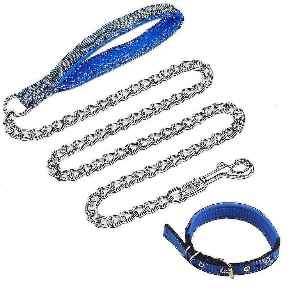 Chain Link Dog Leash Anti Chew Strong Anti Bite Dog Leash Comfortable Soft Padded Handle For Medium Large Dogs
