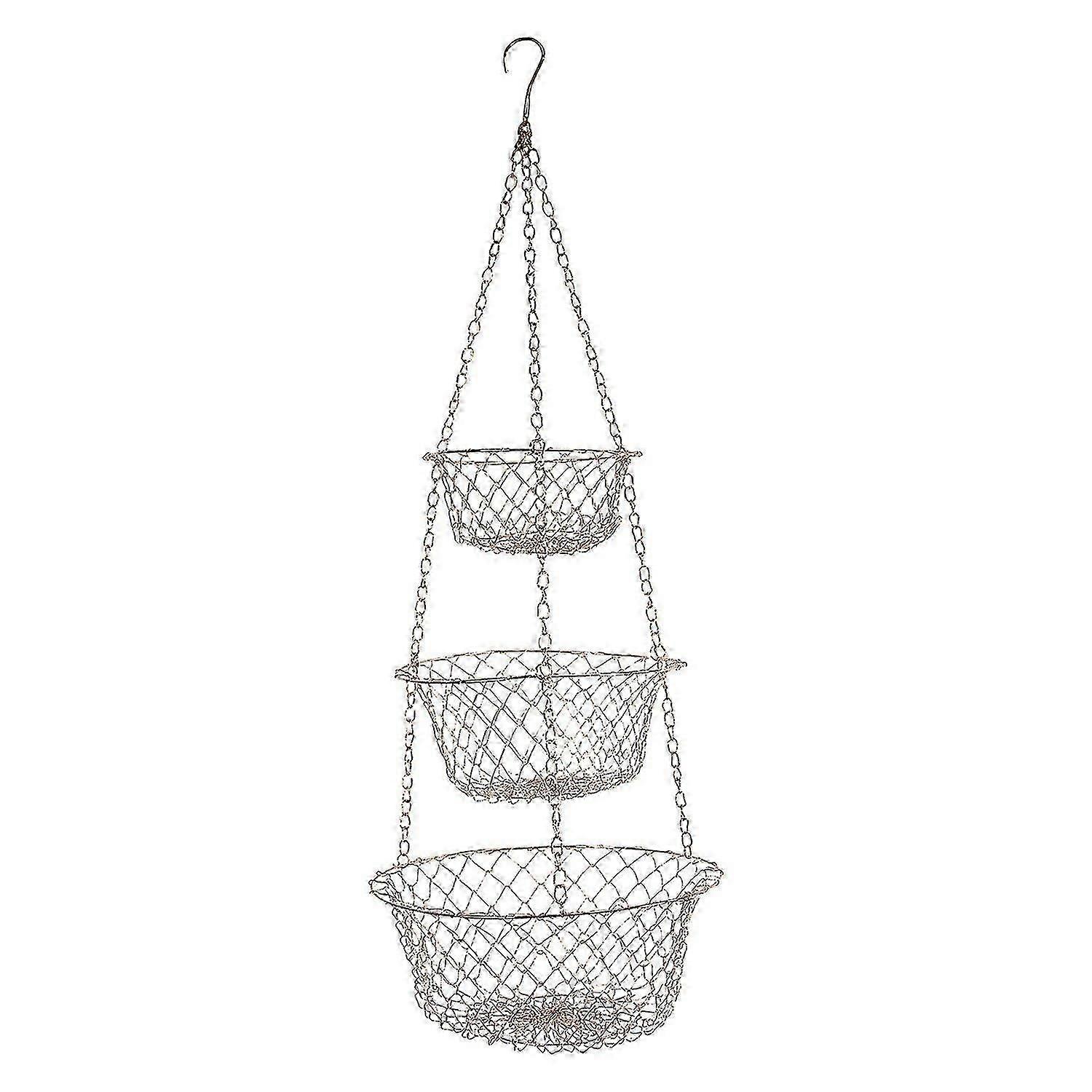 3 Tier Hanging Fruit Basket with Chain, Space Saving Vegetable Kitchen Storage Organizer for Fruits Plants