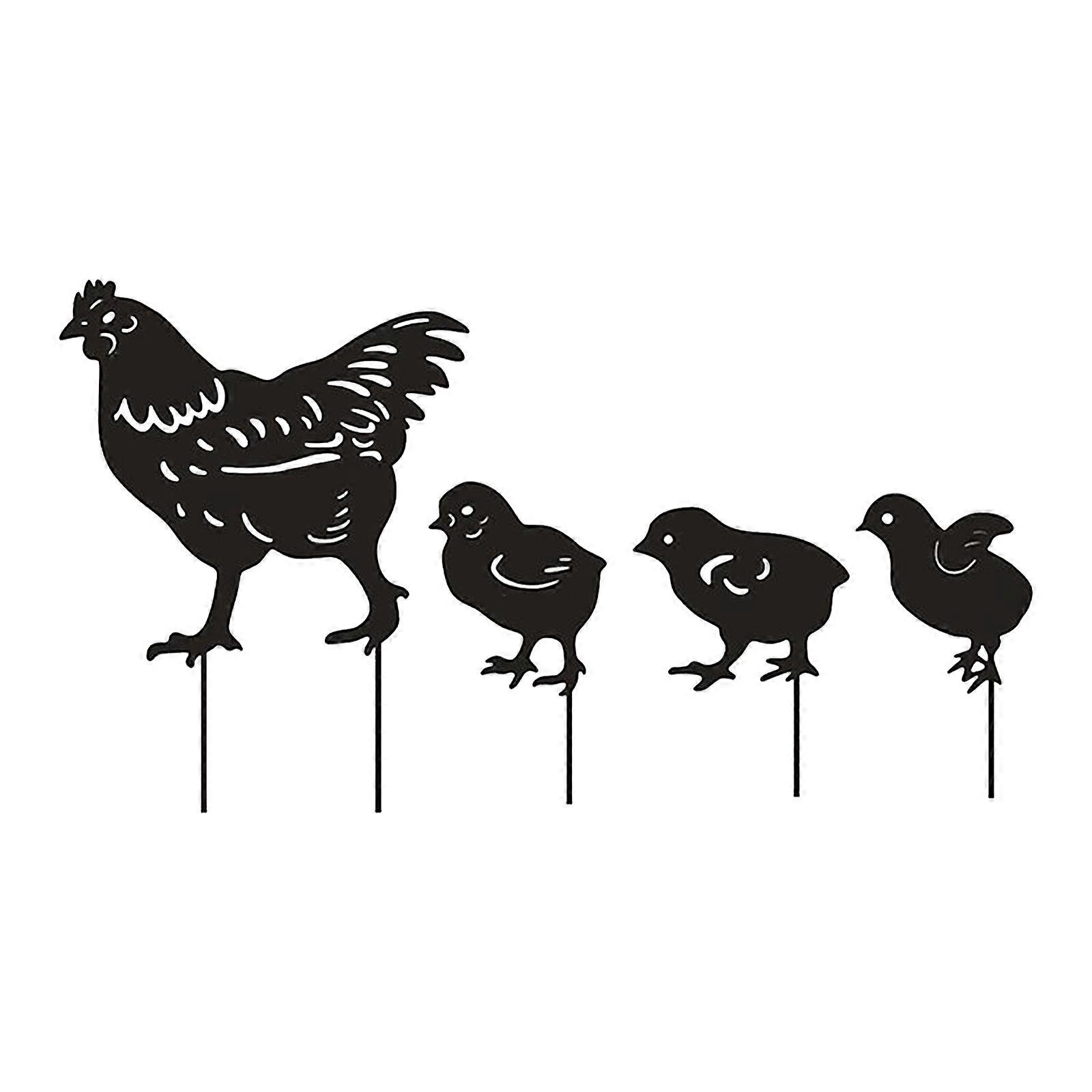 Chicken Antss Fairy Garden Decorative Statue, Metal Hen and Chicken Profiless Garden Stake, Ideal for Yard, Garden, Lawns Decoration, Animal Outdoor