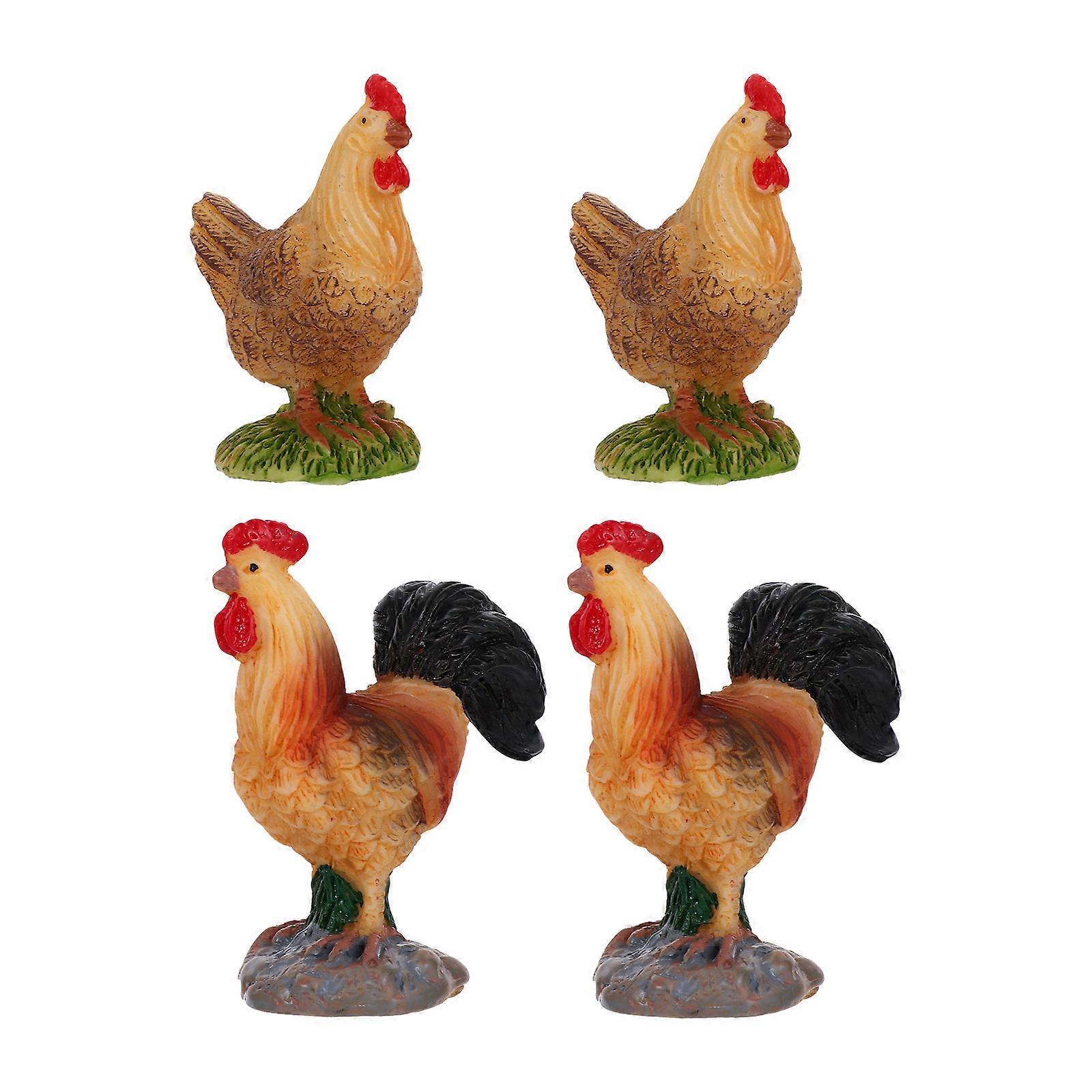 Chicken Christmas Ornaments Resin Rooster Hen Adornment Miniature Fairy Garden Assorted Color 6.00X6.00X3.00CM 4Pcs