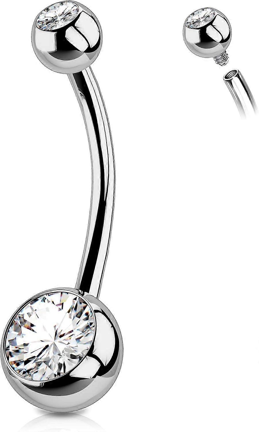 Titanium Belly Button Rings, Internally Threaded 14mm Long Belly Ring, Round CZ