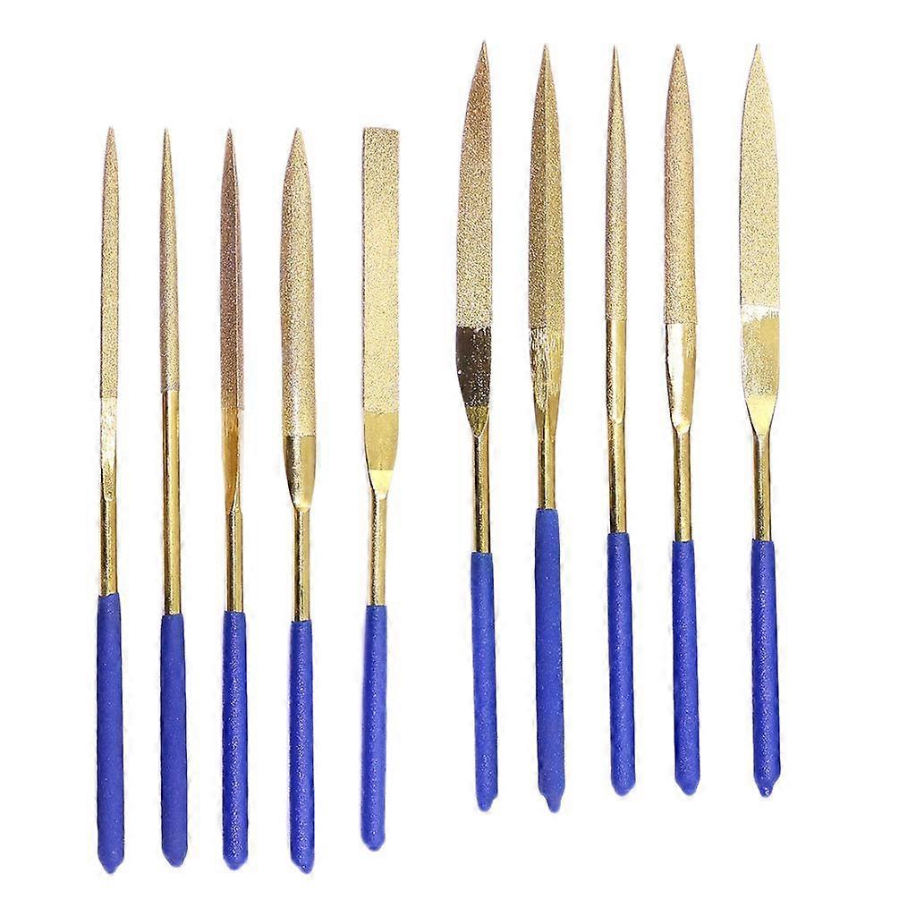 Description: Each file unique shape to cover full range shaping, forming, carving, engraving and material removal Works on all natural materials marble, wood, stone , bone etc. Used in deburing, fixing chipped glass, mirror, tile, deling, ceramics, many hobbies and professional applications. Includes flat parallel, flat taper, round, knife, half-round, three-square and square files. The diamond working part of each file is around have a variety of shapes which may not be easily identified from the picture: flat, flat on one side,rounded on other, square, triangular, round. Specification: Material:Stainless stell + high hardness diamond Handle Diameter: 3/4/5mm Total Length: 140/160/180mm Weight: 113/187/287g Package Includes: 10pcs Needle File