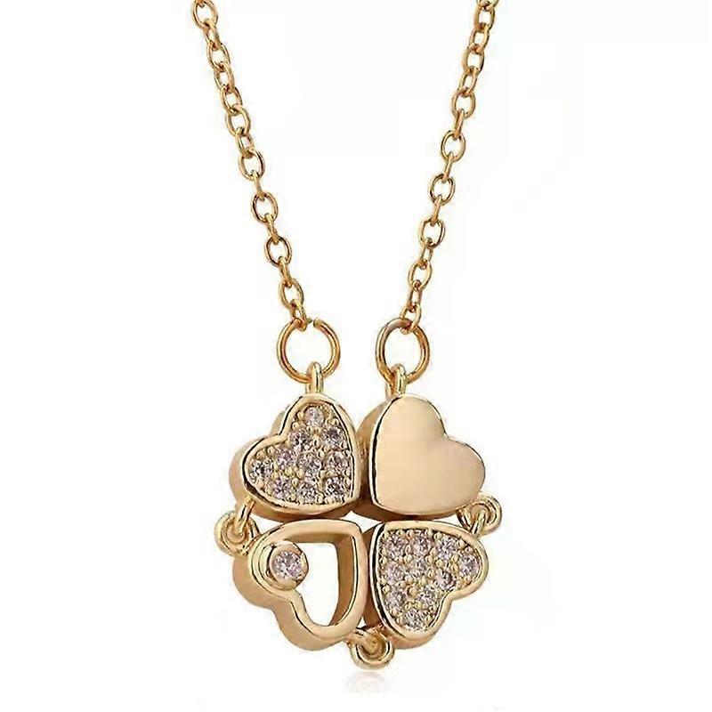 Titanium Steel Four-leaf Clover Necklace Magnetic Folding Love Heart-shaped Clavicle Pendant Chain Birthday Gift for Girlfriend