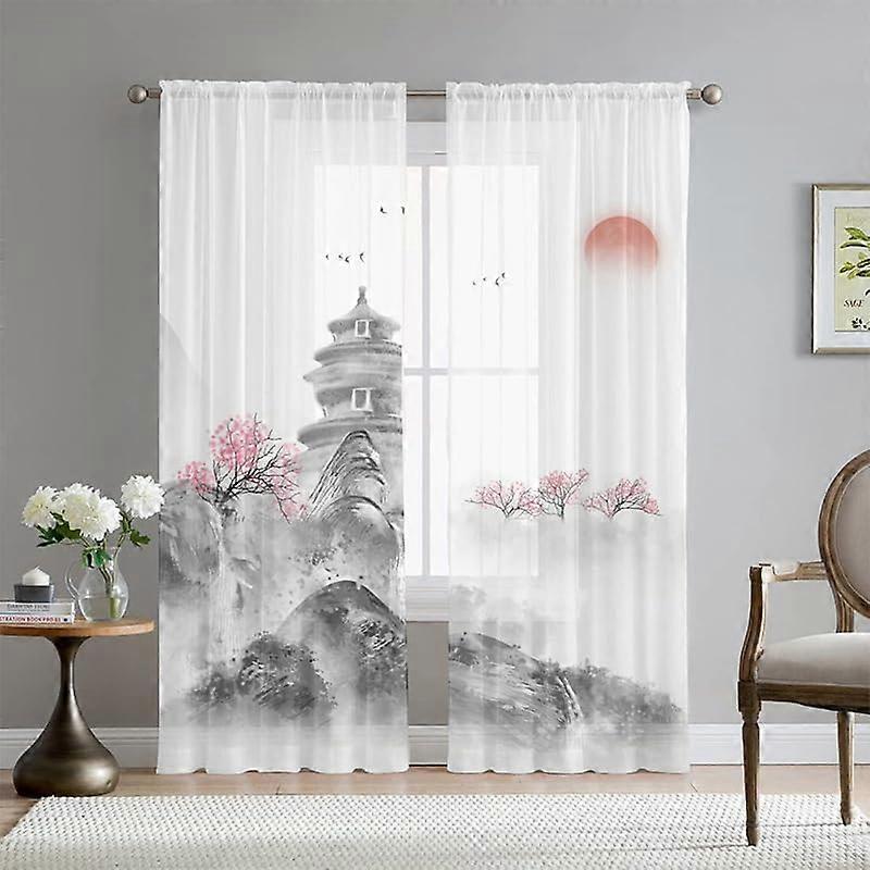 Chinese Style Curtains Living Room Sheer Set of 2 Modern Tulle 108x160 cm