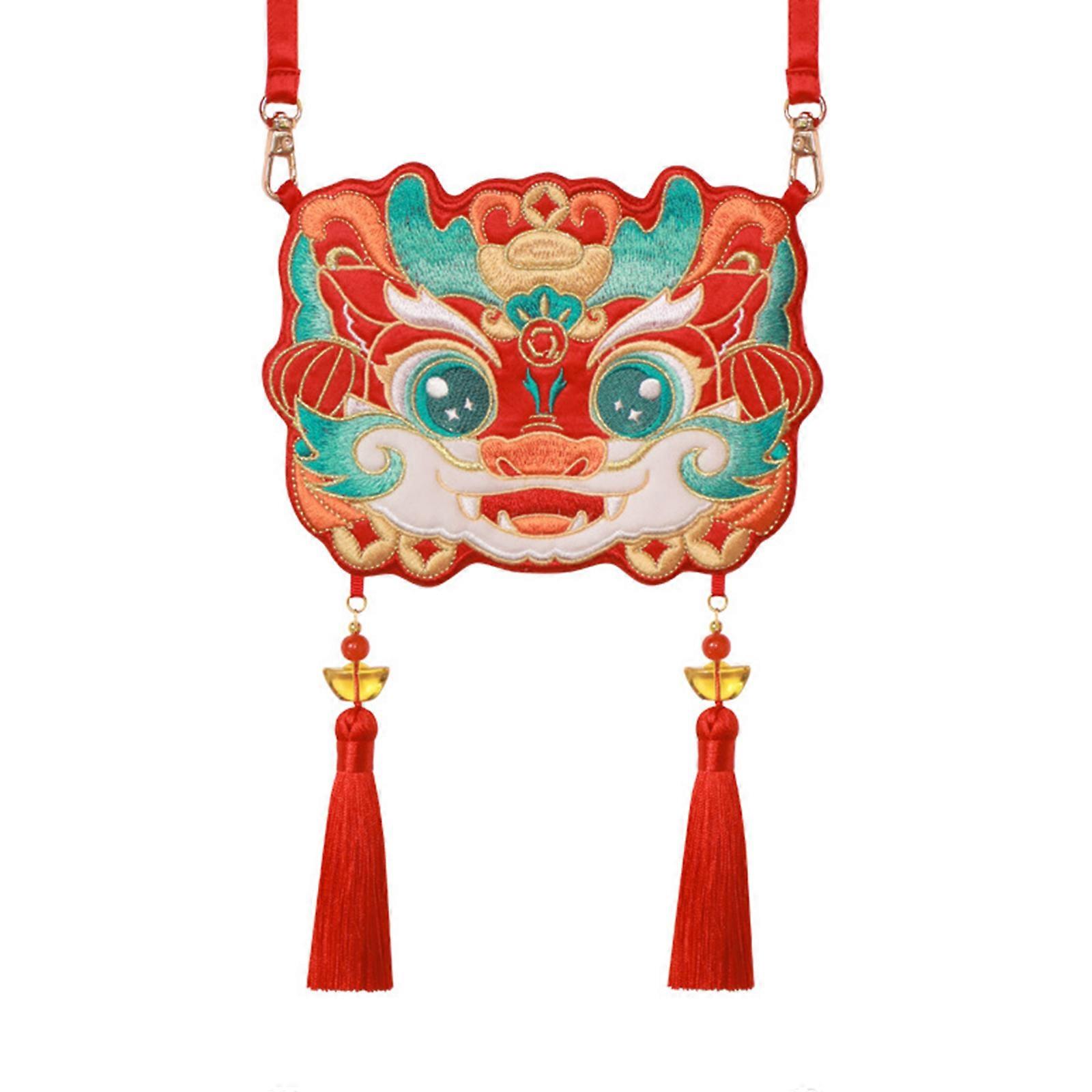 Chinese Dragon Year Crossbody Bag Embroidery Shoulder Bag for Women Girl Vintage Hanfu Bag Mini Square Bag Makeup Bag