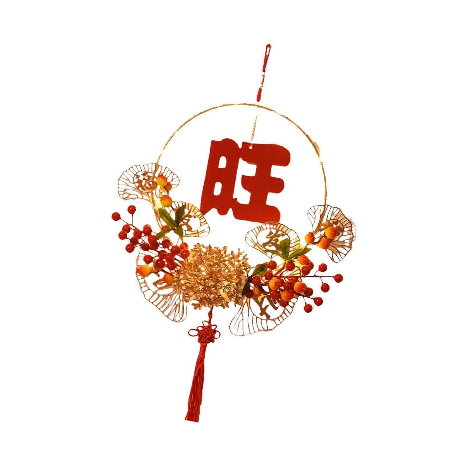 Chinese New Year Wreath Luminous 2025 Wreath Light Decor with Red Berries
