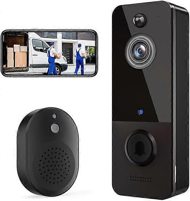 About this product [Two-way Audio] Wireless doorbell with built-in speaker and microphone for easy communication with visitors or pets [Night Vision] The wireless doorbell camera is equipped with a high-quality 850nm infrared LED for clear viewing in dark environments. It captures clear video even in low-light conditions, ensuring nighttime visibility. [Cloud Storage] encrypted cloud storage protects your privacy and stores recordings online for easy access and backup. [HD Image] Wireless doorbell with HD video quality and support for live streaming and recorded viewing. [Wide-Angle Lens] The camera doorbell has a 133° horizontal viewing angle and a 155° diagonal viewing angle. [Smart WiFi Configuration] Ultra-low power chip keeps the doorbell always online and consumes less power. [Long-lasting Battery] The wireless video doorbell is equipped with a high-capacity rechargeable battery for extended standby time.