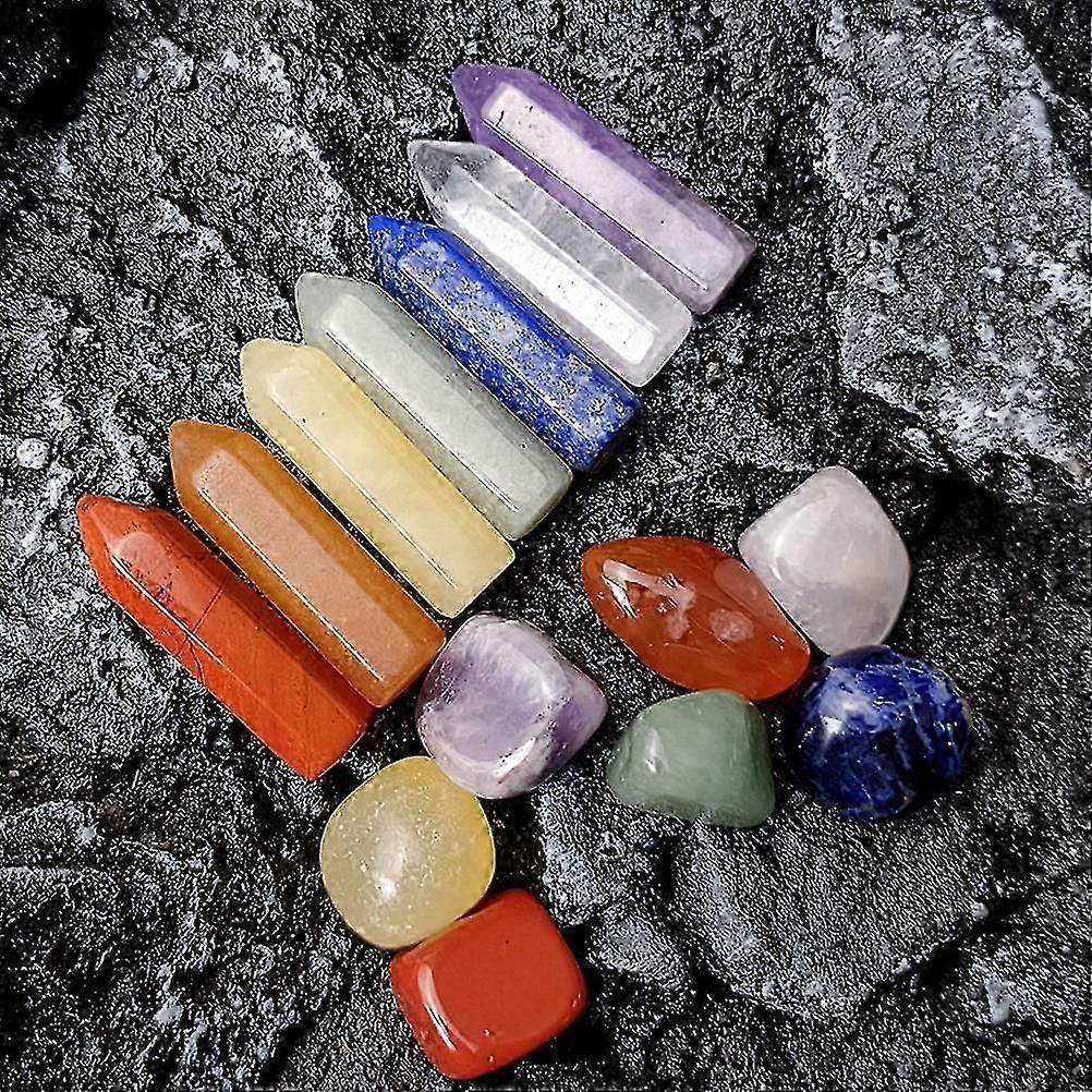 Chakra Crystals Kit 7 Piece Set Hexagonal Irregular Yoga and Massage Stones Labradorite