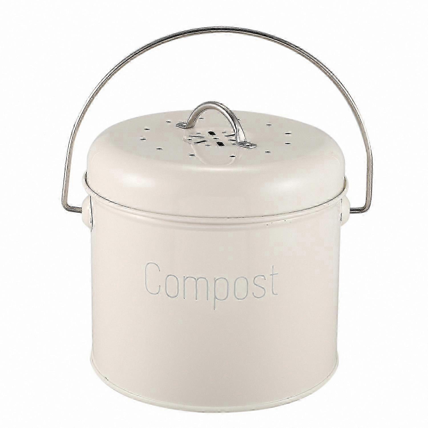 SOURCE SORTING: This compost bin is ideal for separating food waste such as tea bags, eggshells, banana peels, coffee grounds, and various fruit and vegetable peelings for efficient kitchen waste sorting. ECOLOGICAL: By sorting your food waste, you help reduce household waste and support environmental sustainability. If you have a garden or plants, you can use the compost to create natural fertilizer at a lower cost. THE PRODUCT: Includes 1 stainless steel kitchen composter (19.5 x 21.5 cm) with a 3-liter capacity and 1 activated carbon filter. COMPACT DESIGN: The small size allows convenient storage in your kitchen, such as under the sink. The swivel handle makes it easy to carry. ODOR CONTROL: The activated carbon filter helps neutralize unpleasant odors, keeping your kitchen fresh and clean. FEATURES: Activated carbon filter for odor absorption; ventilated design to promote air circulation; smooth surface finish; includes sealing ring. USES: Collecting food scraps for composting; creating organic fertilizer. MATERIAL: Stainless steel COLOR: Milky white SIZE: 19.5 x 21.5 cm PACKAGE CONTENTS: 1 x compost bin, 1 x activated carbon filter Note: Light and display settings may cause slight color variations. Measurement tolerance is +/- 1-3 cm.