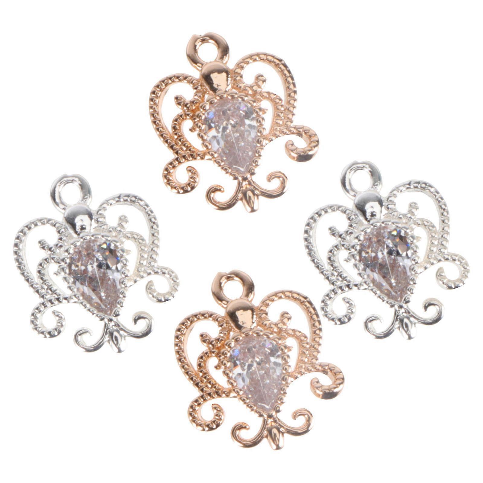 Charm Pendant Necklace Zircon Jewelry Accessory Gold Tone 1.5x1.2cm Diy Material Hand Decor 4Pcs