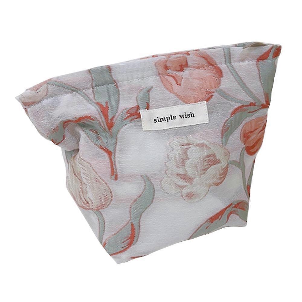 Tulip Pattern Mini Makeup Bag Canvas Portable Zipper Purse Cosmetic Pouch Storage Bag for Traveling,