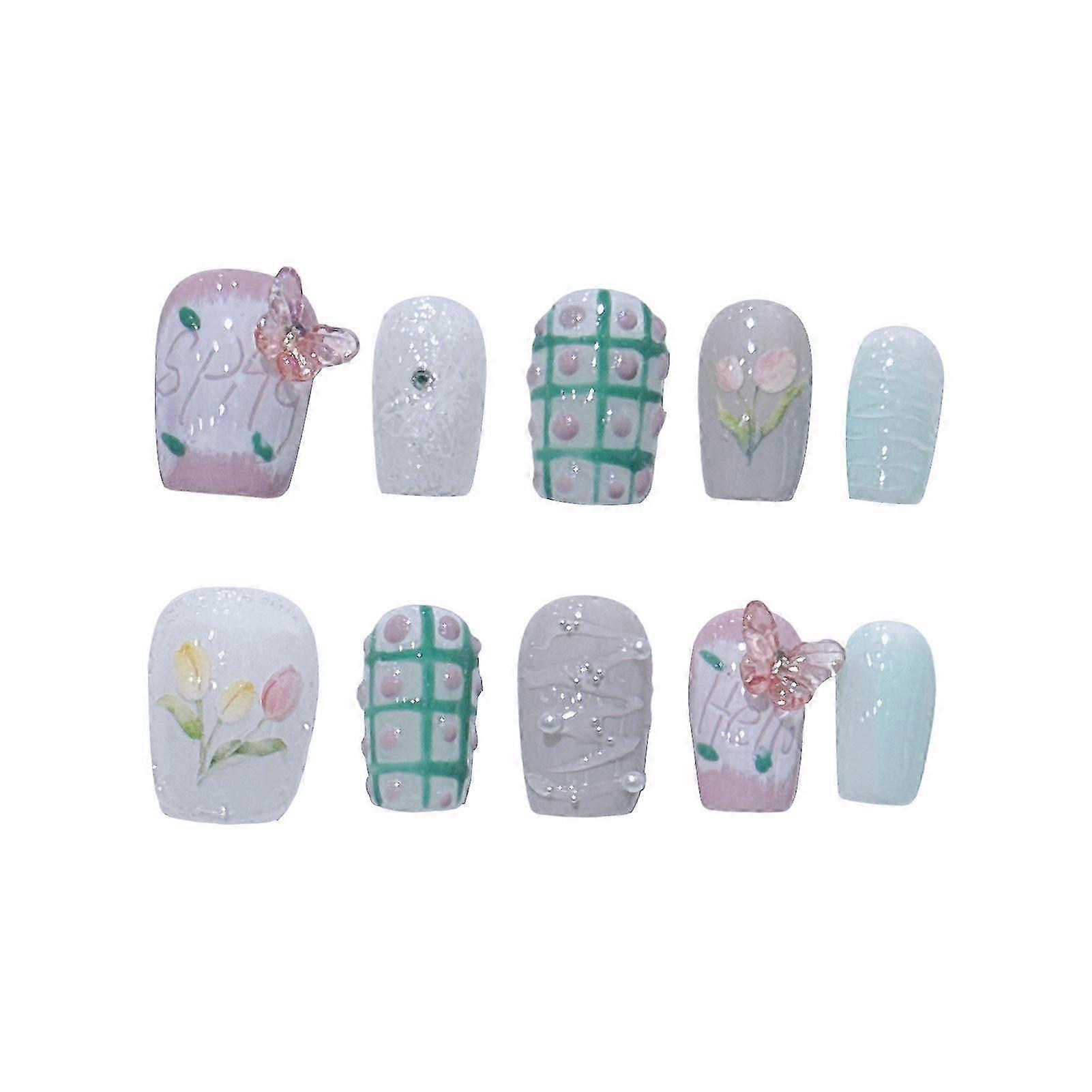 Handmade Fake Nails with Tulip Printed Long Lasting Safe Material Waterproof False Nails for Fingernail DIY Decoration 2025
