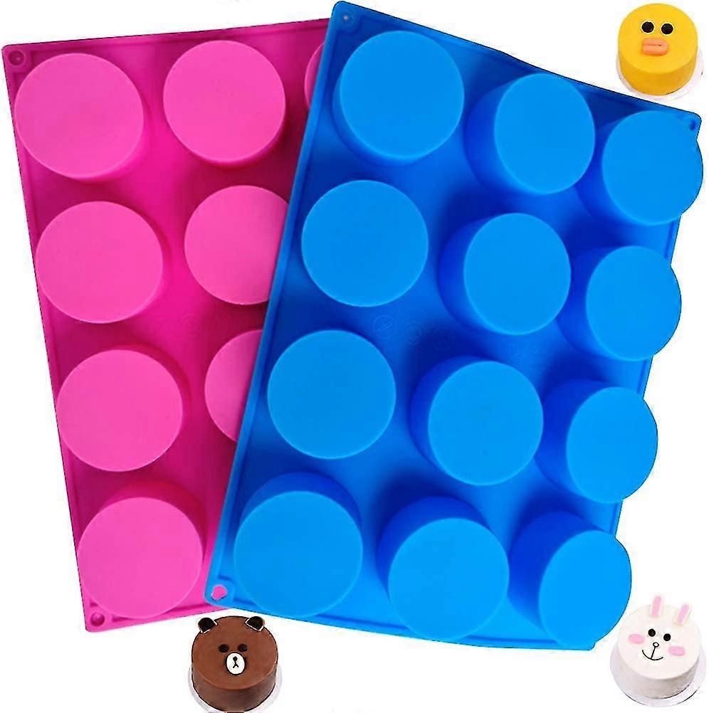 Pack 12 Hole Silicone Cylinder Molds For Making Chocolate, Candy, Soap, Muffin, Cupcake, Brownie, Cake, Pudding, Cookie - Blue, Pink