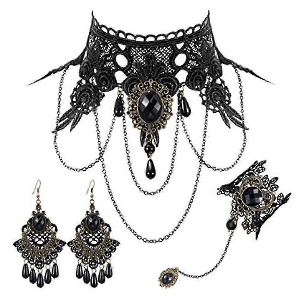 Choker Necklace Bracelet Earrings Set Jewelry for Halloween Costume Wedding
