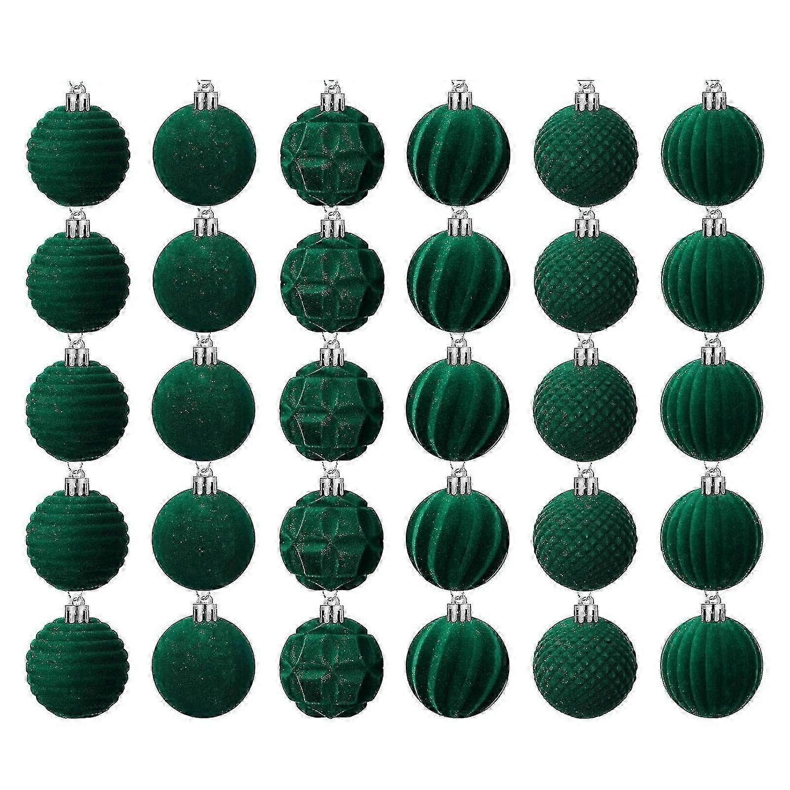 30 Pcs Velvet Christmas Ball naments Green Flocked Christmas naments F Tree Plastic Balls Xmas Decative Hanging naments Flocked Velvet Features: Material : Plastic-based green flocked ball naments the holiday spirit; The flocked texture ensures these naments won't fade, warp, break, ensuring they're wear- f many holidays to come; With these reliable additions Enhance your overall holiday dec Quantity Variety: This set contains 30 of green Christmas naments, 6 different styles, 5 each; This is enough to meet your decation needs can even be shared with family; Each piece measures approximately 1.97 inches/5 cm, suitable f different festive Easy hanging design: Each flocked ball nament comes with a gold metal buckle gold ribbon lanyard, encouraging you to design ; The comftable texture soft surface of these green naments add an attractive to your holiday decations ELEGANT LOOK: Create a beautiful vintage look by hanging these flocked naments; Make your Christmas tree lively elegant with its charming flocked texture; Use these naments to transfm your home into a stylish place MULTIPURPOSE: These Christmas tree balls also make an ideal addition to your holiday decations; use them on holiday wreaths, mantels, railings, garls; they can also serve as delicate decations f weddings, engagements, parties, anniversaries, even Makes a gift f special Product Description: Product includes: 30x Christmas balls