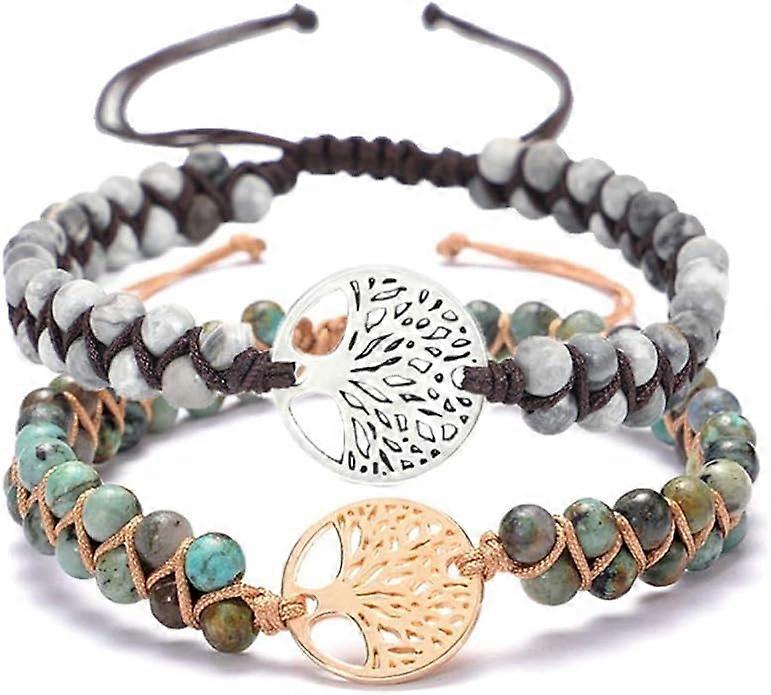 Tree of Life Yoga Bracelet 2Pcs Handmade Natural Stone Bracelet African Turquoise Braided Women Friendship Bracelet