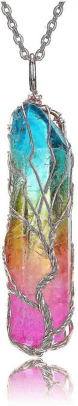 Tree Of Life Rainbow Quartz Crystal Gemstone Reiki Healing Rock Raw Stone Chakra Pendant Necklace Women Rose Gold