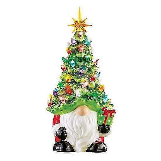 Christmas Gnome Statue Figurine with Tree Hat - Festive Resin Decor for Indoor & Outdoor Holiday Decorations